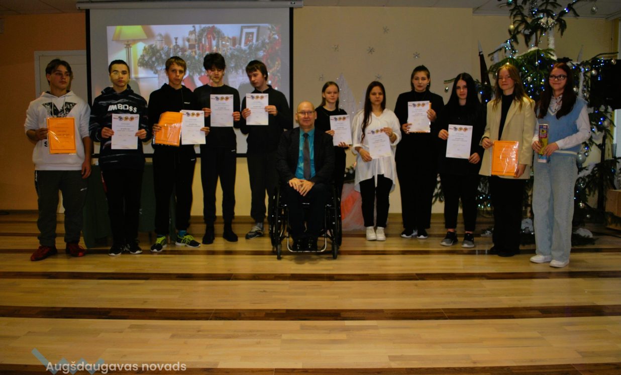 Paldies par Ziemassvētku noskaņas radīšanu mūzikas skolotājai Innai KRALIKAI, teātra pulciņa skolotājai Ilzei OZOLAI un vēstures skolotājai Ingai ČALENKO. Pasākumu vadīja 5. klases skolēni Jana KOKINA un Kirils PANOVSKIS.