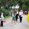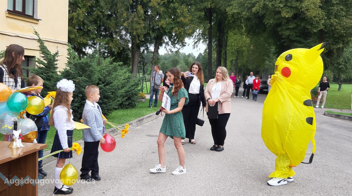 Pirmklasnieki visus sveica ar dzejoļiem, 12.klases skolēni prasīja pirmklasniekus atrast balonu ar savu vārdu un arī jautri dejoja ar Pikaču.