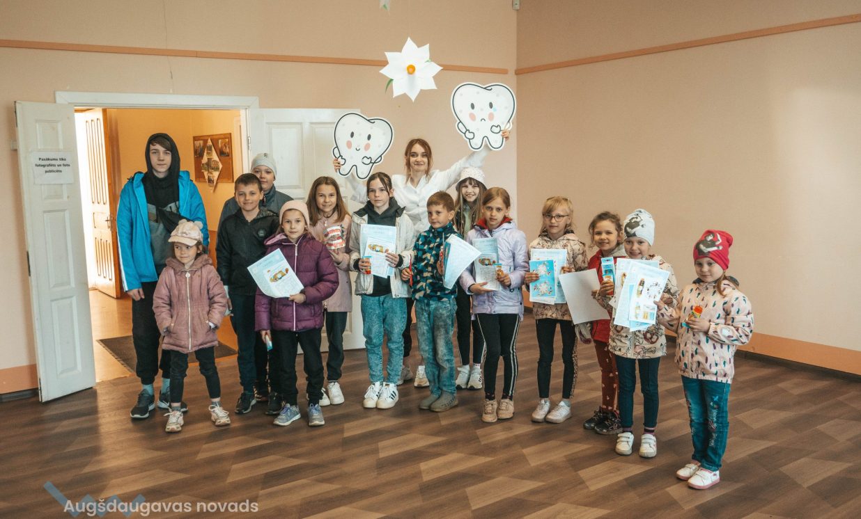 6. maijs bija ļoti saturīga diena gan bērniem, gan jauniešiem. Skrudalienas, Salienas un Tabores pagastos bērniem vecumā no 3 līdz 8 gadiem bija iespēja apmeklēt lekciju “Mutes dobuma higiēna un slimības profilakse”, kuru organizēja jauka jauniete no Tabores pagasta Jurāte Šeškena, zobārsta asistente un tagad arī Rīgas Stradiņa universitātes Zobārstniecības fakultātes 1.kursa Zobu higiēnistu studiju programmas studente kopā ar jaunatnes lietu speciālisti Ināru Lapkovsku. Pasākuma laikā bērniem un vecākiem tika stāstīts par kariesa attīstību, veselīgu uzturu, pareizu zobu tīrīšanu. Bērni pielietoja iegūtās zināšanās, spēlējoties un rādot uz modelīša, kā tīrīt zobus. Kā arī katrs bērns saņēma vērtīgas balvas, lai rūpētos par savu veselību.