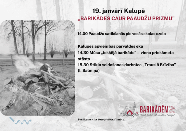 Kalupes pagasta teritorijā, pie vecās skolas ozola, Barikāžu aizstāvju atceres diena. Barikāžu dalībnieku tikšanās pie ugunskura. 14.30 Kalupes pagasta pārvaldes ēķā Vakarēšana kopā ar Ingu Salmiņu Darbnīca “Stikla pārvērtības”. Dziesmas Māras Kraukles izpildījumā.