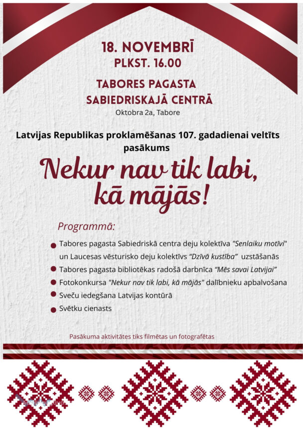 Radošā darbnīca “Mēs savai Latvijai’’, 17.00 svētku koncerts “Ne kur nav tik labi, kā mājās…”