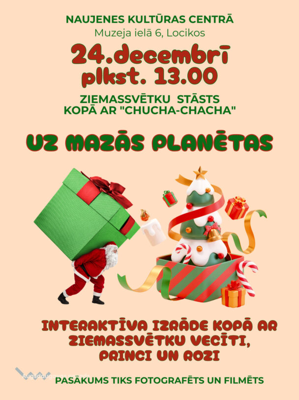 Ziemassvētku eglīte bērniem24.12.2025Kultūra Vieta: Naujenes kultūras centrsLaiks:13:00Datums:24.12.2025