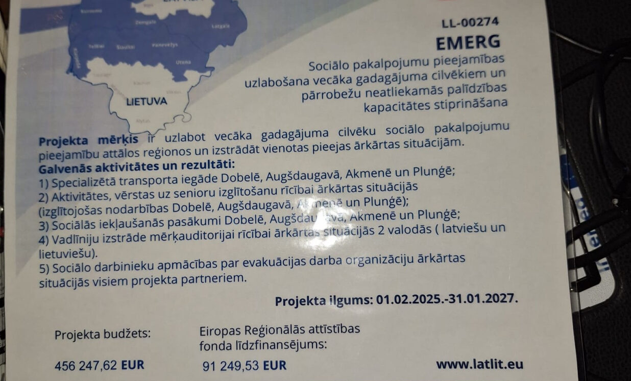 Novembrī Auce un Dobele aizvadījušas sirsnīgus sociālās iekļaušanas pasākumus senioriem no Latvijas un Lietuvas, īstenojot Interreg V-A Latvijas–Lietuvas pārrobežu sadarbības programmas 2021.–2027. gadam projektu "Sociālo pakalpojumu pieejamības uzlabošana vecāka gadagājuma cilvēkiem un pārrobežu neatliekamās palīdzības kapacitātes stiprināšana" (EMERG).