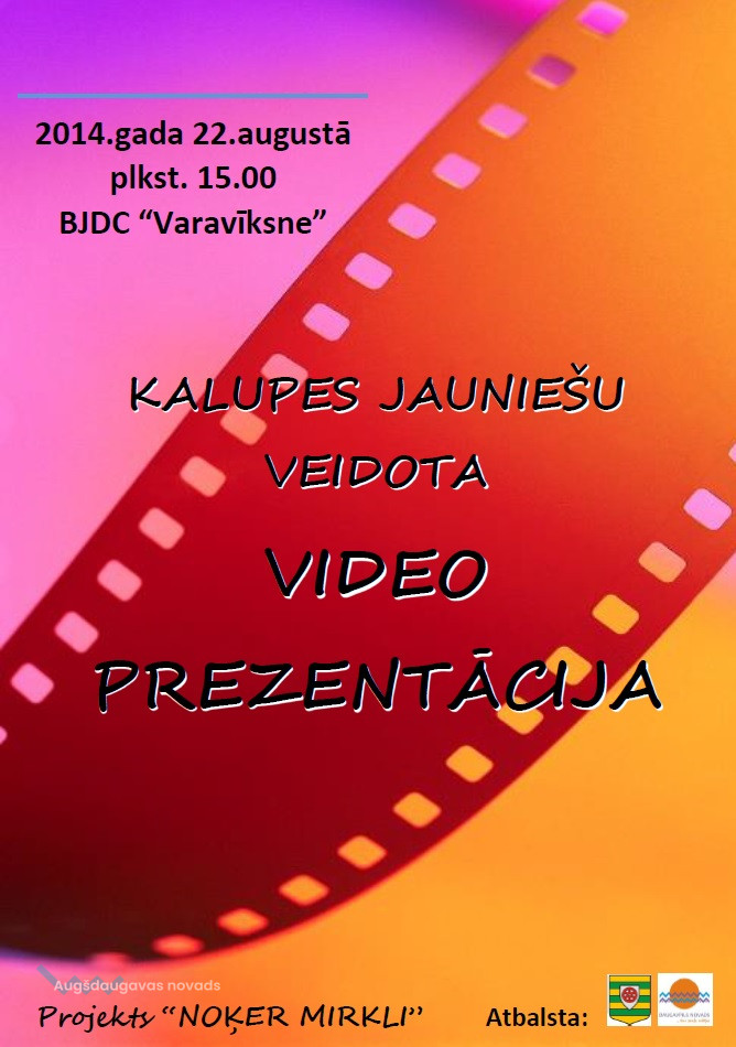 Projekta ietvaros tika rīkotas divu dienu apmācības jauniešiem video scenārija veidošanā, filmēšanā un video materiāla montāžā. Jaunieši noklausoties praktiskos padomus video veidošanā, varēja likt lietā savu fantāziju un izveidot scenāriju video materiālam pēc kura tad tika uzņemta īsfilma par Kalupes jaunatni.