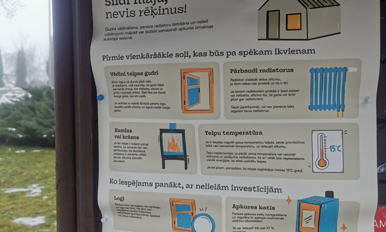 Lai sasniegtu pēc iespējas plašāku auditoriju, no 2025. gada novembra pašvaldības konsultāciju centros un bibliotēkās ir izvietoti informatīvie plakāti. Novembra tēma ir “Sildi māju, nevis rēķinus!”. Informatīvajos plakātos īsumā apkopoti galvenie padomi, kā samazināt enerģijas patēriņu, optimizēt apkures izmaksas un gudri izmantot siltumenerģiju ikdienā.