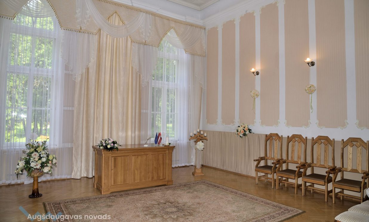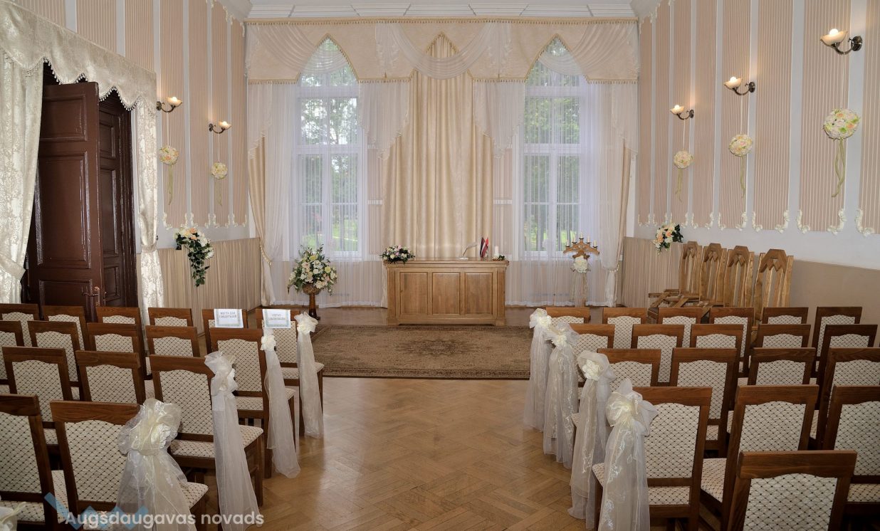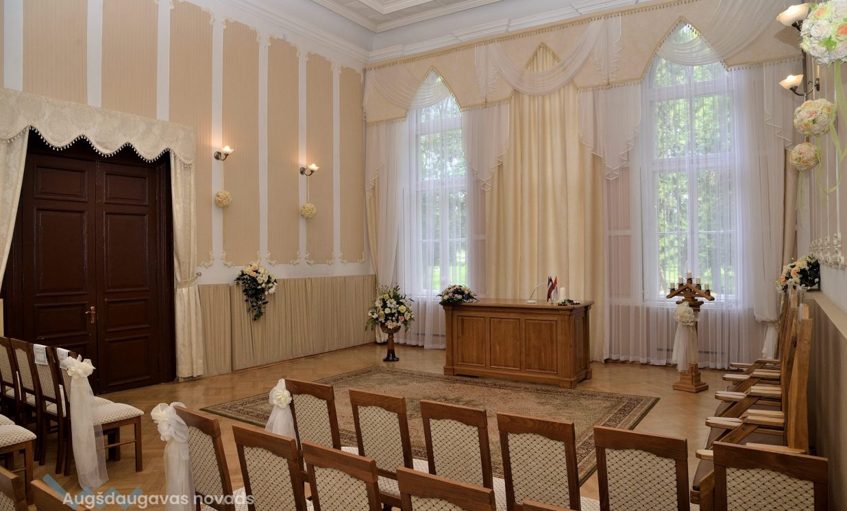 Dzimtsarakstu nodaļas telpās laulības reģistrācija bez ceremonijas, bez viesu klātbūtnes (klātesot) lieciniekiem - jebkurā darba dienā: