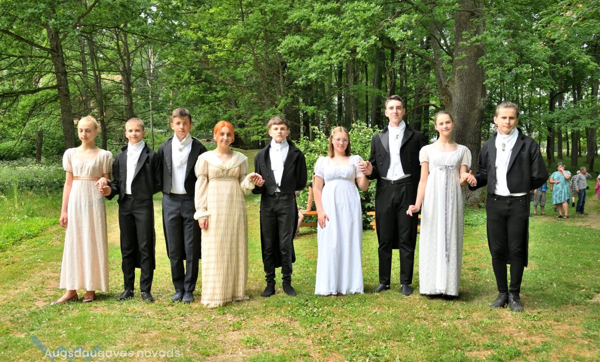 Salienas kultūras nama deju kopa “Sudraba kurpīte” 2022. gada pirmajā pusē uzsāka savu ceļu, lai dejotu vēsturiskās dejas Vecsalienas muižas zālē.